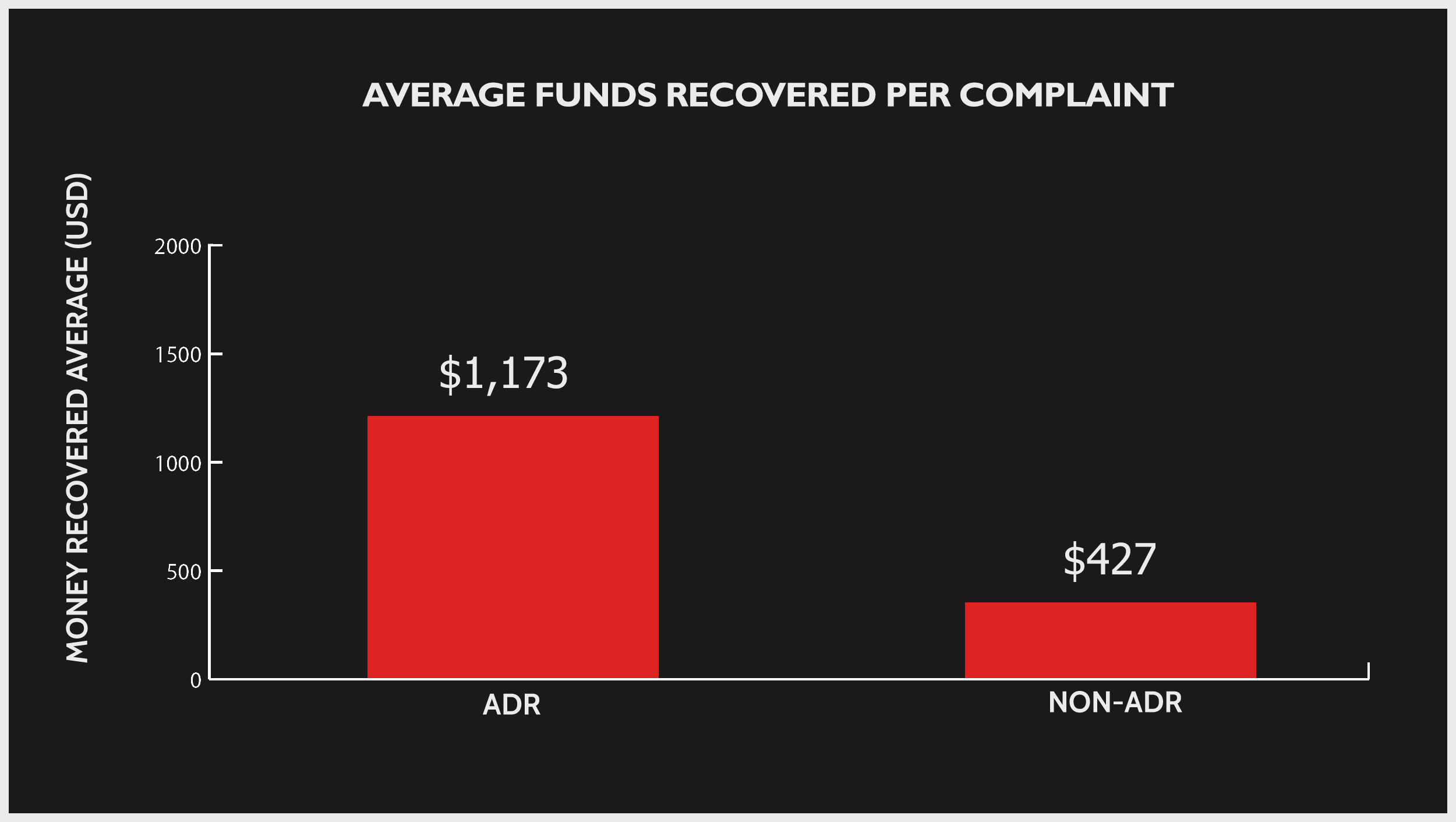 The gap between the money recovered via ADR complaints and non-ADR complaints is quite substantial this year. However, given the divergence in the increase in complaint volumes for these two categories, this was to be expected.