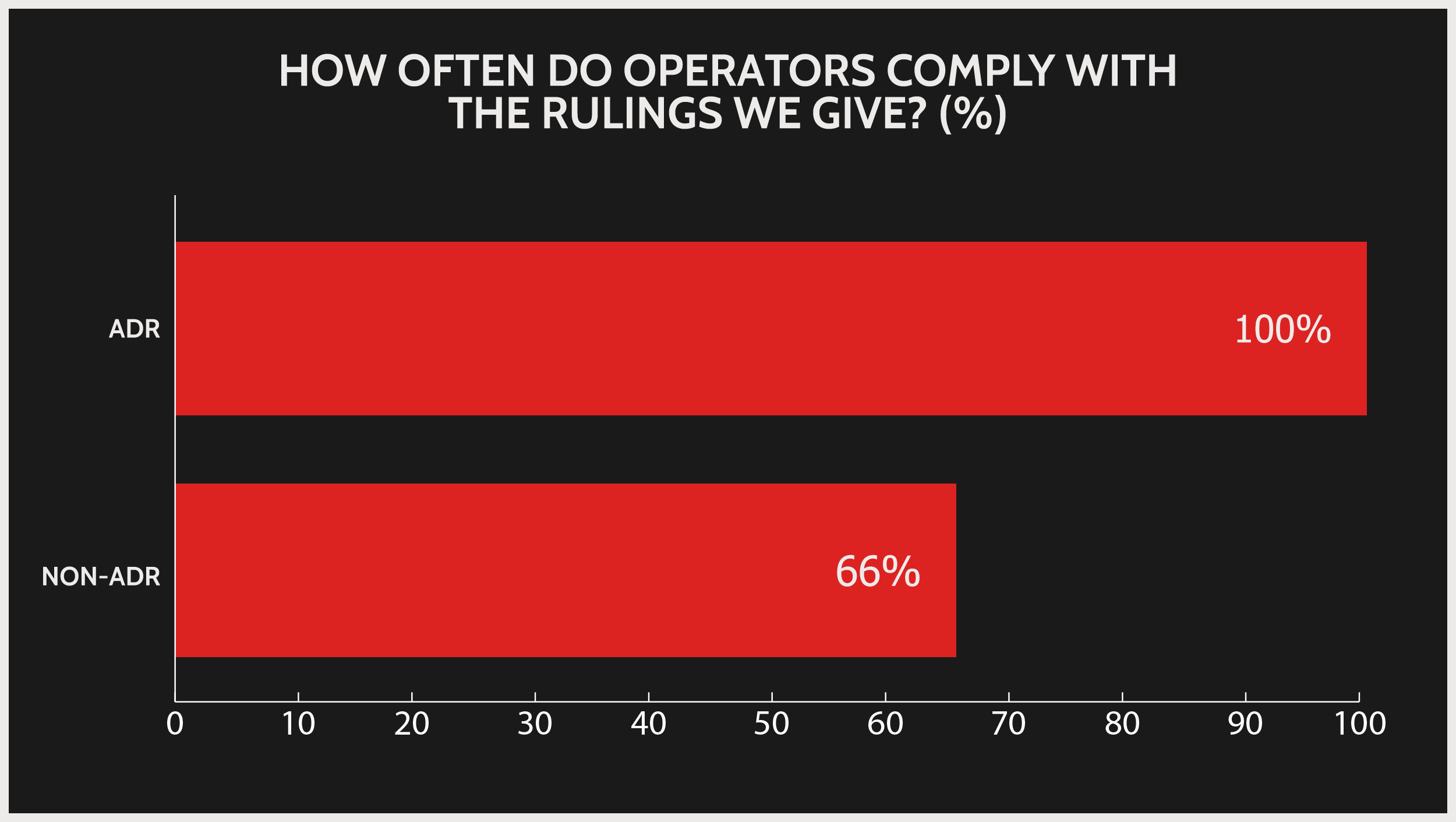 How often do operators comply with the rulings we give?