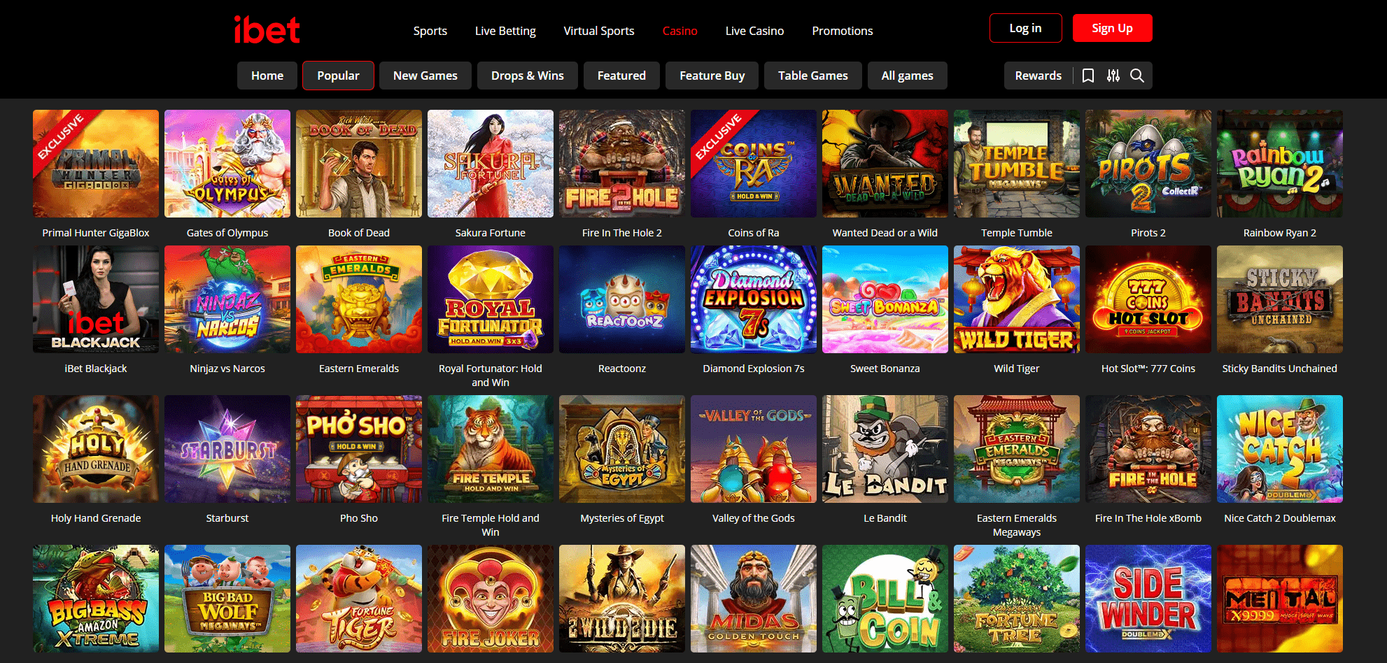 The iBet Casino game lobby is extremely easy to navigate. For starters, each of the three major iBet Casino gaming sections (Sports Betting, Casino, and Live Casino) has a dedicated tab at the top of the website.